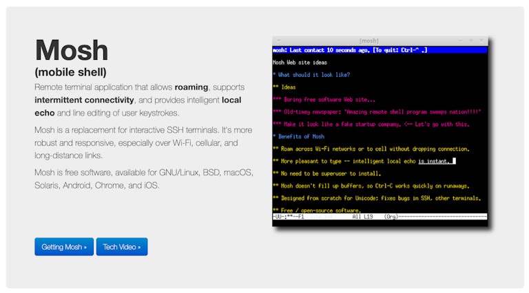 Mosh particularly comes in handy if you are on a limited internet connection, or if you’re far away from the data center.