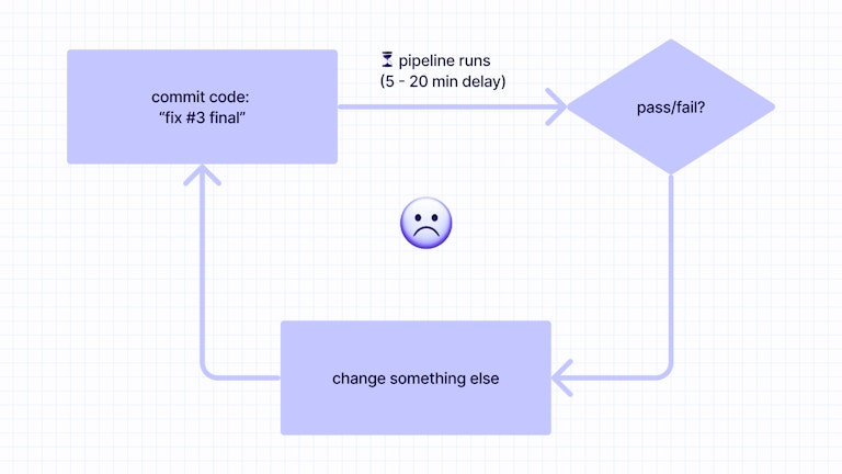 The other option is for developers to reproduce the failure locally. To do so, however, they often need to interpret and translate the configuration files used for the build, which can be complex and specific to a particular continuous integration system. Moreover, warnings or errors can be difficult to replicate due to subtle differences, such as versions of a tool or installed plugins.