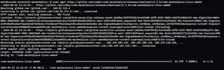 Details about integrating code-marketplace into a Coder workspace are in the Coder documentation. For a working example, see this template.