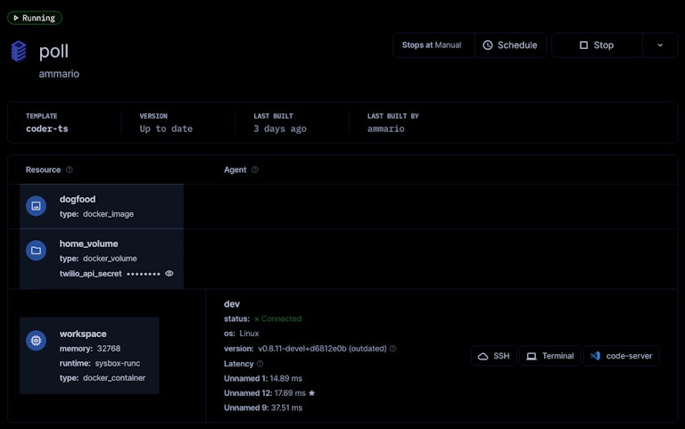 Templates may now expose arbitrary metadata, including resourcing, network addresses and runtime information. Mark variables as secret to expose workspace-scoped passwords and keys. Learn more in our docs.