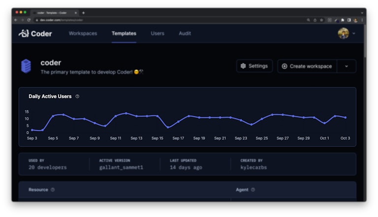 Each template now has DAU metrics visible on the Template page. To ensure accuracy, activity is only recorded on workspace connections.