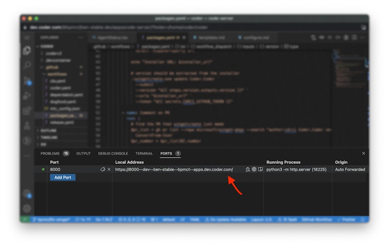 If you are using code-server inside Coder, ports are automatically forwarded to Coder when you start a server.