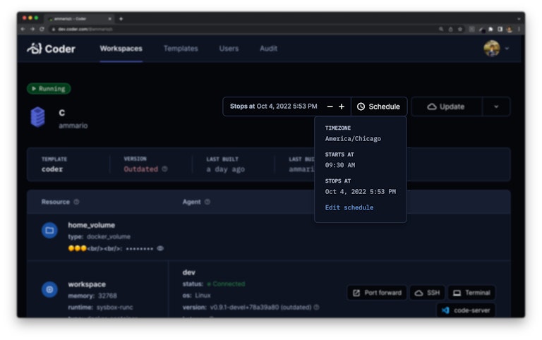 Now, when we detect workspace connection activity, we bump the auto-stop timer an hour. IDE, SSH, Port Forwarding, and app activity trigger this bump.