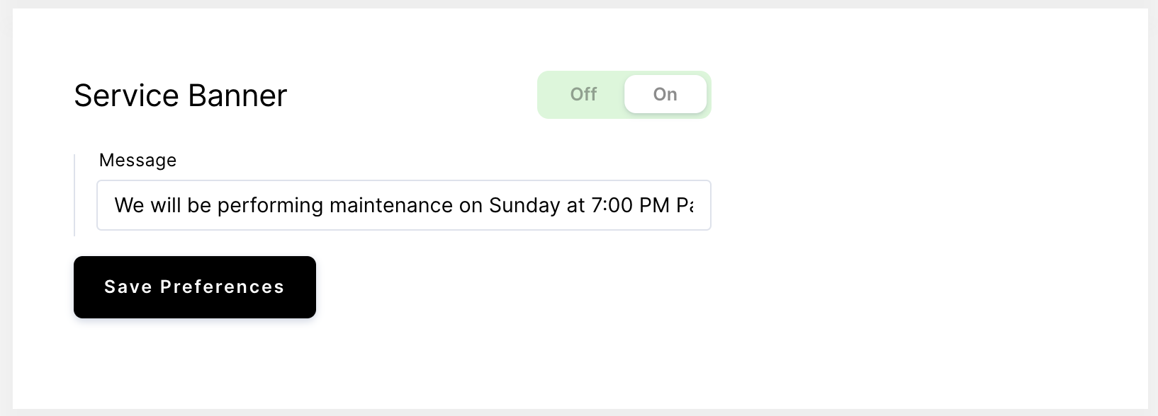 - Toggle the Service Banner switch to On.