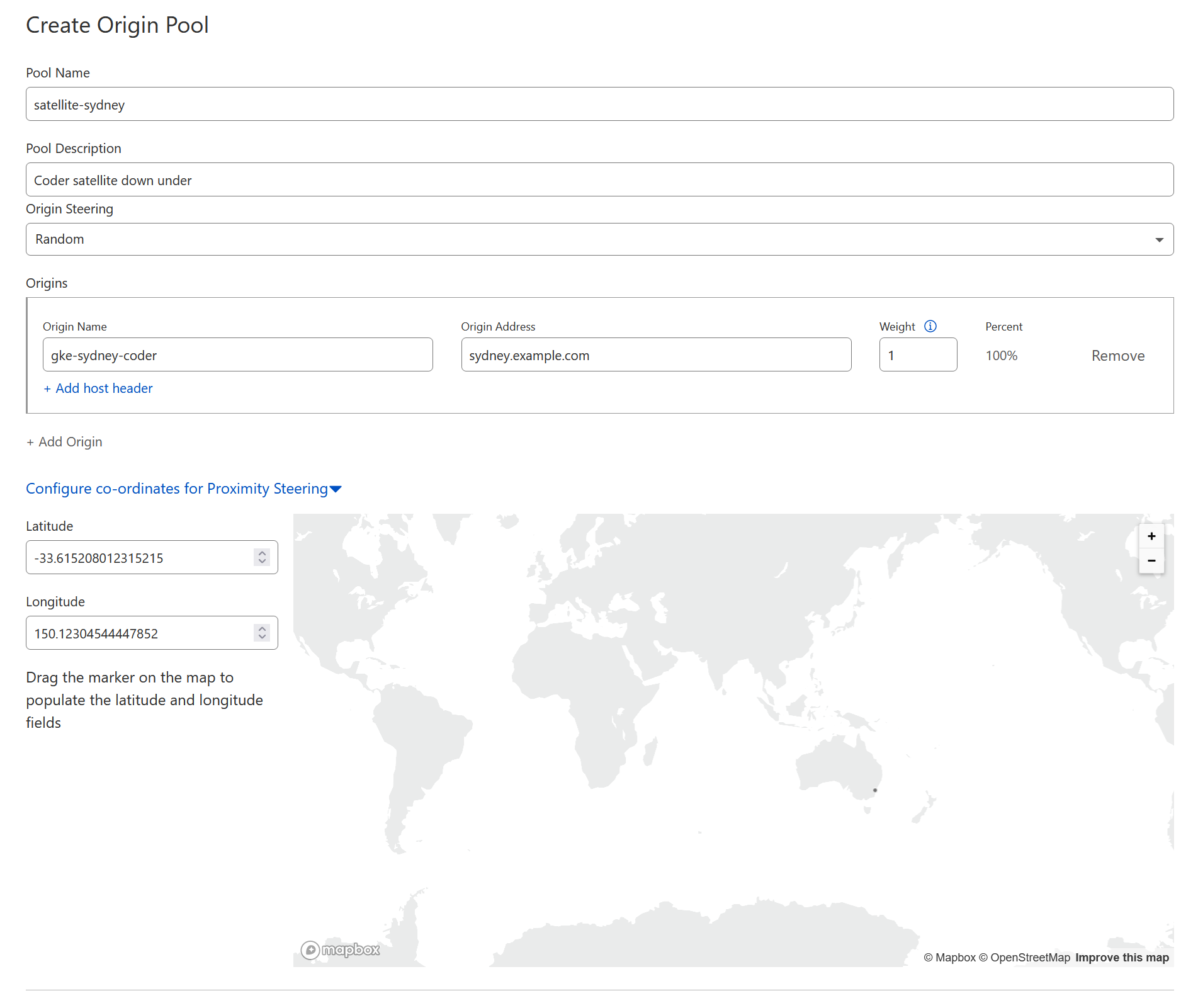 Click Configure co-ordinates for Proximity Steering and drag the marker to roughly where the deployment is located geographically.
