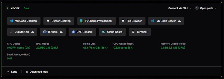 Yoni evaluated several commercial solutions but found them too rigid. When he came across Coder, he found the CDE platform CytoReason had been looking for. He was drawn to the flexibility: Coder workspaces can include anything that can be provisioned with a Terraform template. Plus, Coder is self-hosted and self-managed, giving CytoReason greater control over features, costs, and security.