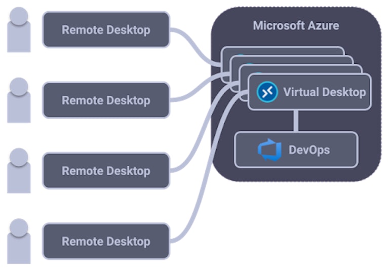 J.B. Hunt’s developers work on solutions to manage the logistics of shipping and transportation. The three dozen product teams use the same stack, which includes Docker, Java, and .NET Core. Most of their projects are implemented as micro-services. Each team has its own dependencies to satisfy the product’s needs. Of the 700 developers at J.B. Hunt, about 150 are remote. The simplest way for the SRE team to provide each remote developer with a development environment was through virtual desktops in the cloud accessed by Remote Desktop. J.B. Hunt used Azure’s Virtual Desktop service to host these environments. For version control and devops, they use Azure DevOps.