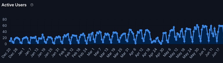 In a matter of 6 months the adoption grew consistently from a few users to 60 Daily Active Users, and a total of 200+ developers using the template.