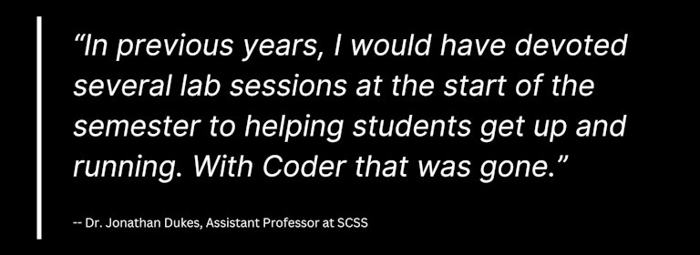 Coder is proving its usefulness not just in enterprise, but in academia, too. With Coder, instructors at the School of Computer Science and Statistics at Trinity College Dublin devote more time to teaching with less effort on setting up students with useful, productive dev environments. And Coder’s scalability and administrative features give SCSS the flexibility to efficiently provide computing resources.
